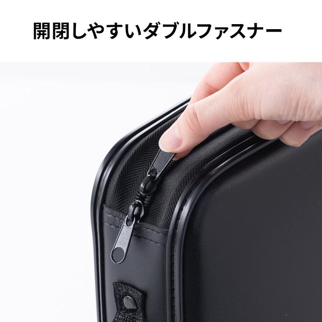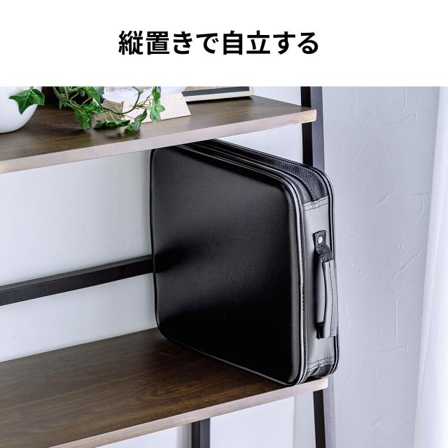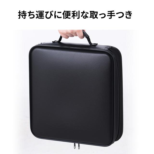 ブルーレイ CD DVDケース 大容量 208枚収納 CDジャケット収納対応 セミハード 取っ手付き ファスナータイプ ブラック[200-FCD072]
