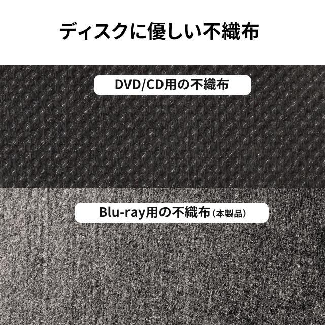 ●不織布にはブルーレイディスクの収納にも対応した凹凸が少なく柔らかい不織布を採用しています。