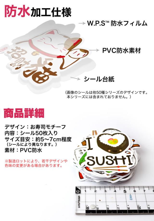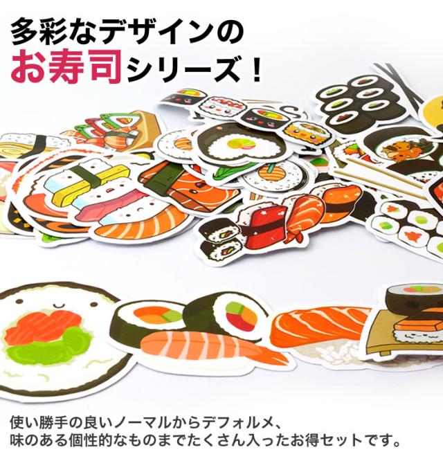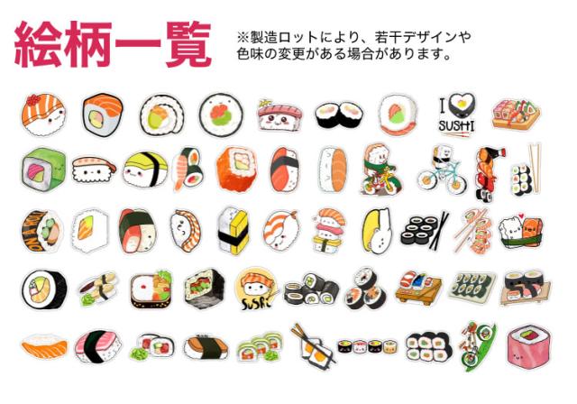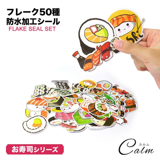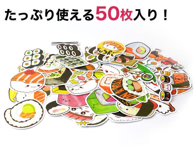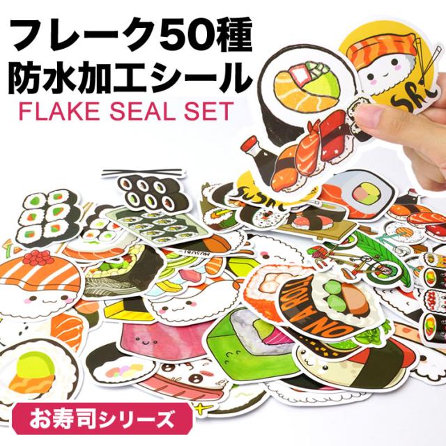 50種 50枚セット お寿司 フレークシール ステッカー かわいい 面白い 防水シート加工 シール