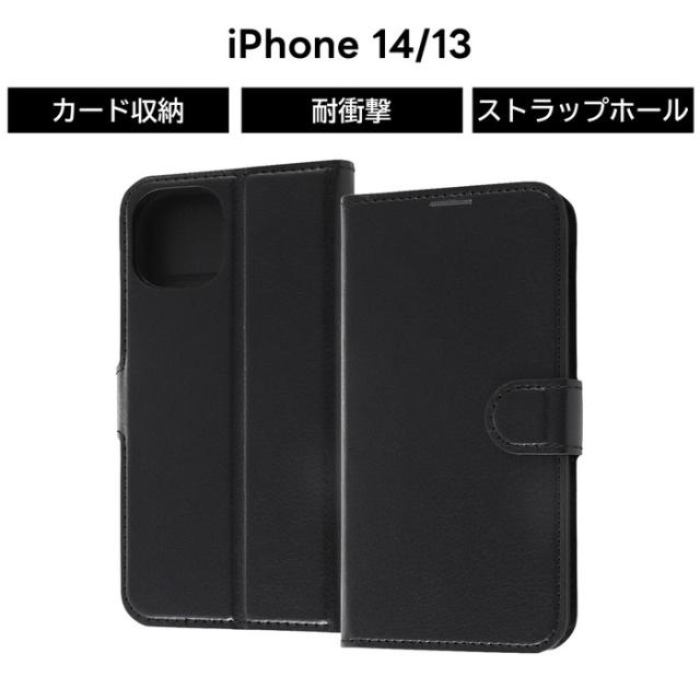 iPhone14 手帳型ケース ブラック 黒 iPhone13 iPhone 14 13 耐衝撃 ケース ソフト ソフトケース ハード ハードケース 手帳型 スマホケース カード収納 iPhone 14