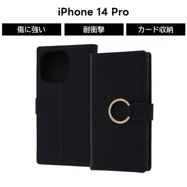 iPhone14Pro 手帳型ケース ブラック リング付き iPhone 14 Pro 耐衝撃 手帳 ケース ソフト ソフトケース ハード ハードケース スマホケース カード収納