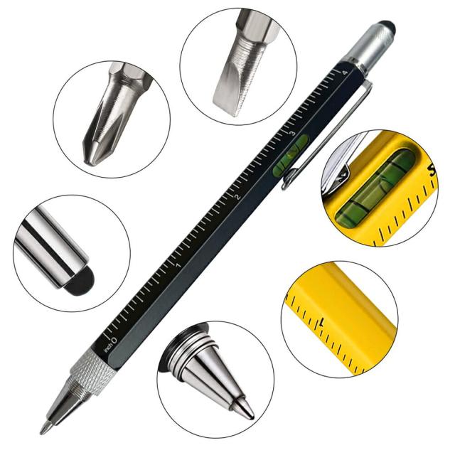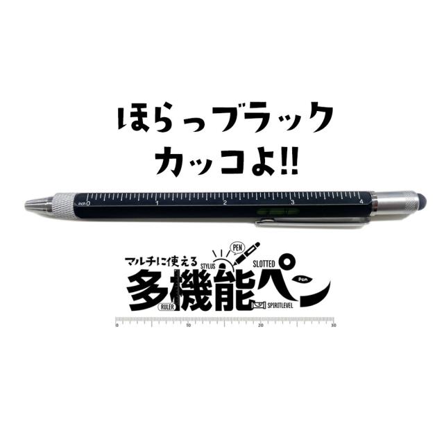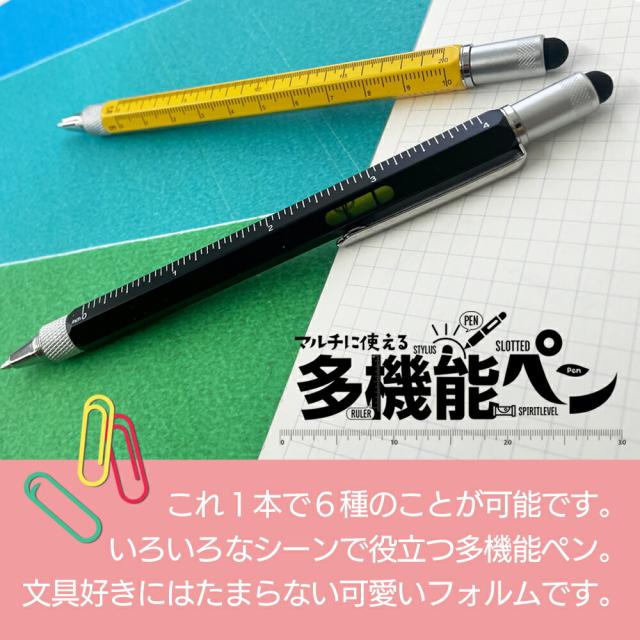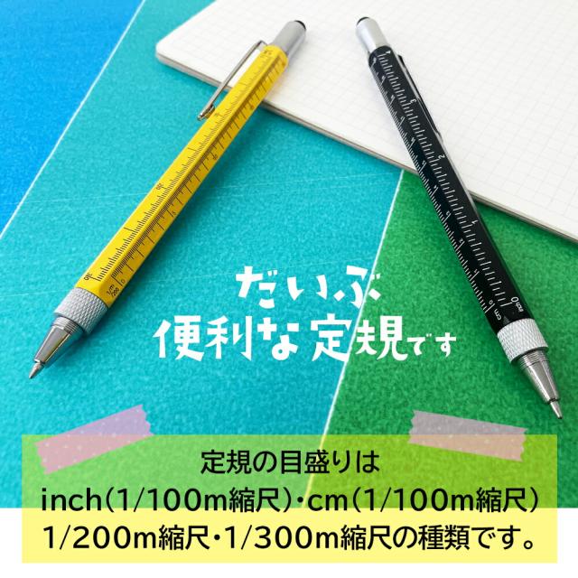 文房具 文具 ボールペン スタイラスペン タッチペン ペン 多機能 定規 inch cm 水平器 プラスドライバー マイナスドライバー ドライバー 便利 ブラック イエロー