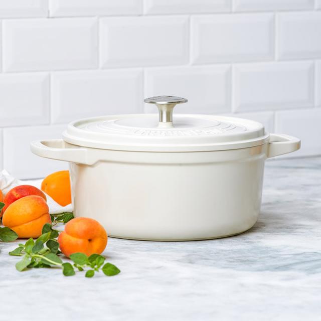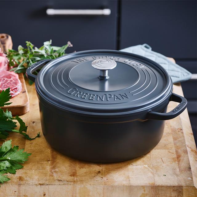 有害物質を一切使用していない調理器具の開発を手掛けるGreenPan(グリーンパン)の軽量ココット鍋。大きすぎず小さすぎず、マルチに活躍する22cmサイズです。見た目よりも扱いやすい軽さに加え、素材の旨味をしっかり引き出す高いパフォーマンスが魅力で、お料理がさらに楽しくなります。