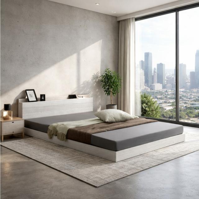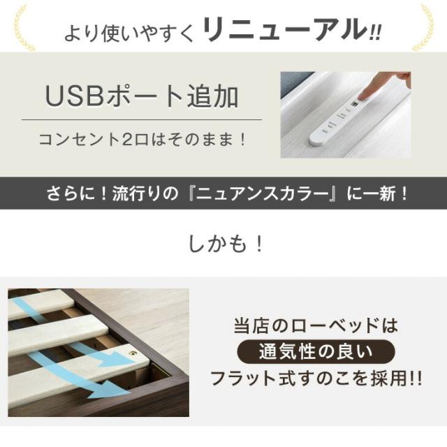 RENEW ニュアンスカラー USB・2コンセント&スマホスタンド付 宮棚 ローベッド シングル 連結 フレームのみ コンセント すのこ 木製 宮付き 宮 棚 シングルベッド ベット ベッド ベッドフレーム フロアベット フロアベッド ローベット 低床 連結ベッド
