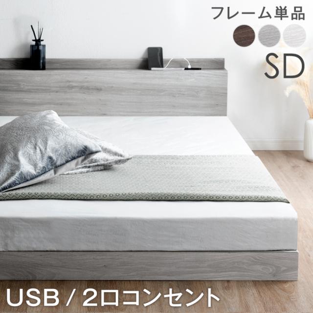 RENEW ニュアンスカラー USB・2コンセント&スマホスタンド付 宮棚 ローベッド セミダブル 連結 フレームのみ コンセント すのこ 木製 宮付き 宮 棚 セミダブルベッド ベット ベッド ベッドフレーム フロアベット フロアベッド ローベット 連結ベッド