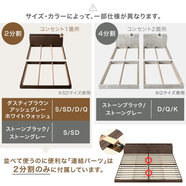 ローベッド すのこ セミダブル ベッド フレーム USB・コンセント&スマホスタンド付 宮棚 連結 ロータイプ コンセント 宮付き すのこベッド ベット ベッドフレーム フロアベッド 低い