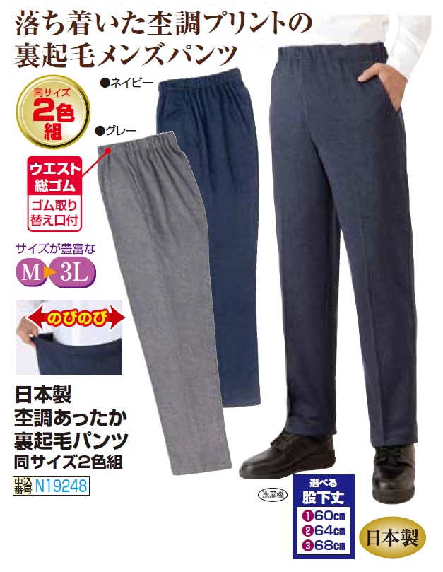 日本製 杢調あったか裏起毛パンツ(同サイズ2色組) 選べる股下丈 ズボン メンズ 紳士 シニア ボトムス 裏起毛パンツ あったか 暖かい 防寒 グレー ネイビー 灰色 紺色 50代 60代 70代 80代 大きいサイズ 父の日 お父さん