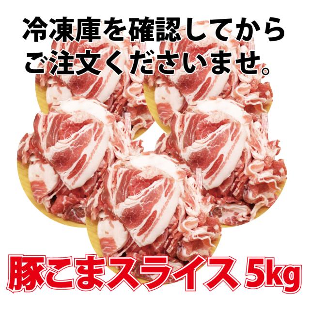 【送料無料】豚こま スライス 1kg×5セット 訳あり 大容量 5キロセット 肉じゃが 野菜炒 焼きそば等に最適 色々な部位が入る訳あり品