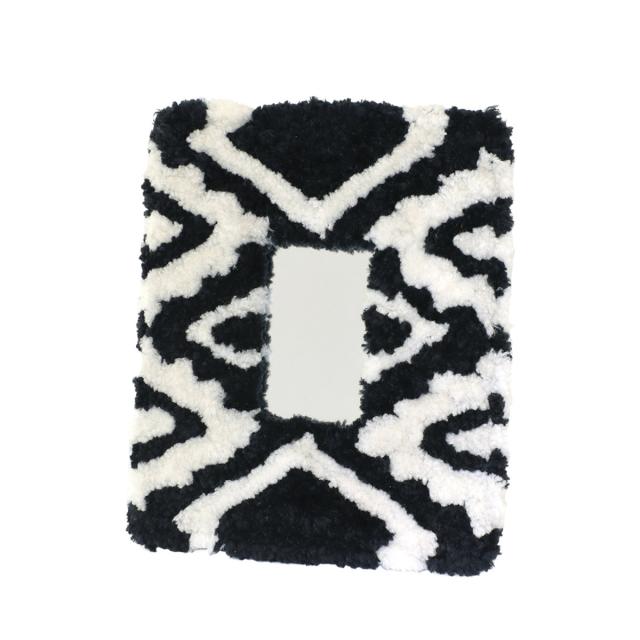 タフティングの素材で縁取られたミラーです。タフティングの素材が柔らかな雰囲気を演出し、お部屋の中を明るい印象にしてくれます。