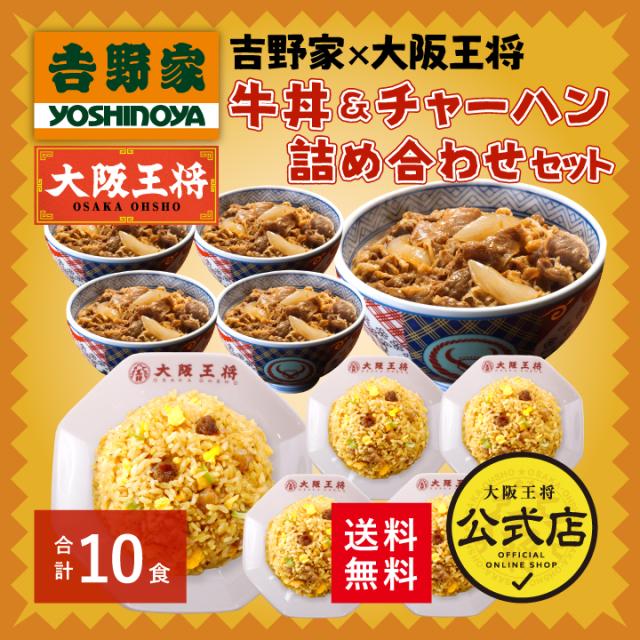 吉野家×大阪王将 牛丼&直火炒めチャーハン詰め合わせセット(合計10食)【送料無料】冷凍食品 炒飯 惣菜 お弁当 リモート テレワーク ギフト 業務用 仕送り 福袋 お取り寄せ チャーハン 牛丼 レンチン可
