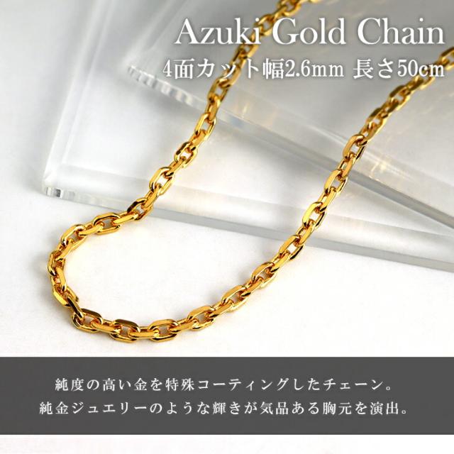 ゴールドカラー 4面カット あずきチェーン 幅2.6mm 50cm チェーンネックレス