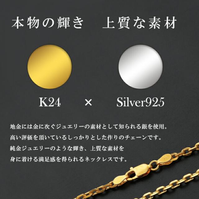 純度の高い金を通常より厚めにシルバー925へと特殊コーティングしたチェーンネックレス。