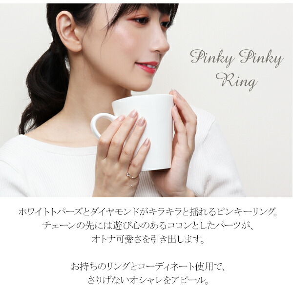 ホワイトトパーズとダイヤモンドがキラキラと揺れるピンキーリング。
