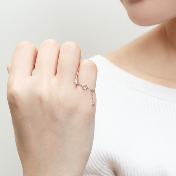 チェーン部分が可動するデザインになっておりますので、付ける指の幅も広がります。