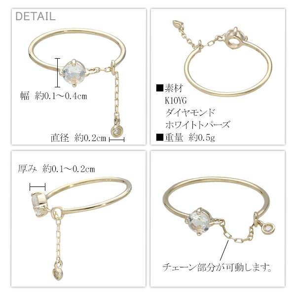 ピンキー&ダイアン K10YG ホワイトトパーズ ピンキーリング 1号〜7号 指輪 K10 10金 10k イエローゴールド ダイヤモンド ダイヤ 4月 11月