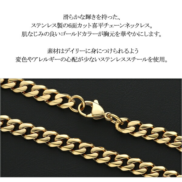 ステンレス 6面カット 喜平 ゴールドカラーチェーン 幅5.5mm 50cm 60cm 70cm