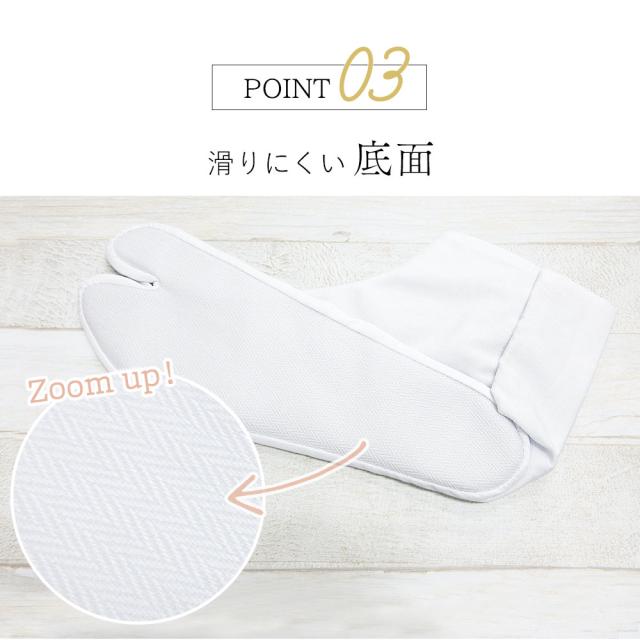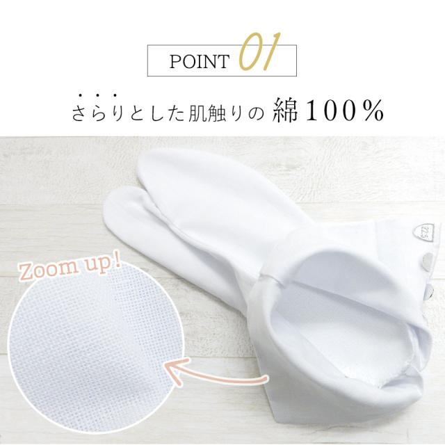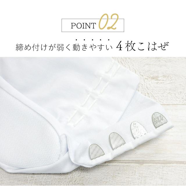 こはぜ付きの白足袋なので、礼装・振袖・お仕事・お稽古・普段のお出掛けなど幅広いシーンでお使いいただけます。