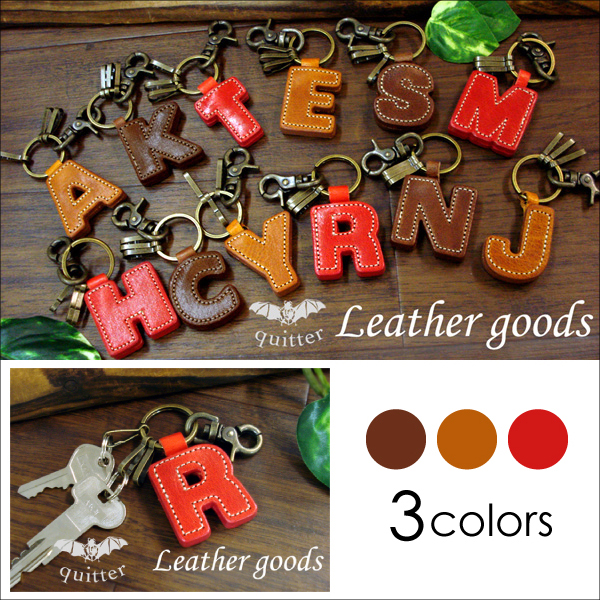 【メール便対応】革キーホルダー イニシャル 革 イニシャルキーホルダー レザー 牛本革 人気 革 quitter クイッター 日本製 革小物 鍵 キー【quitter】36展開!!!quitterオリジナルレザーイニシャルパーツキーホルダー【QT-JL】 ┃