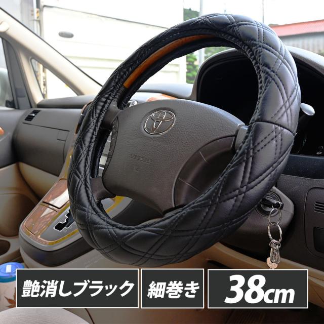 ステアリングカバー ハンドルカバー mサイズ 車ハンドルカバー 艶消し ハンドル カバー Mサイズ 38cm ブラック ダブルステッチ