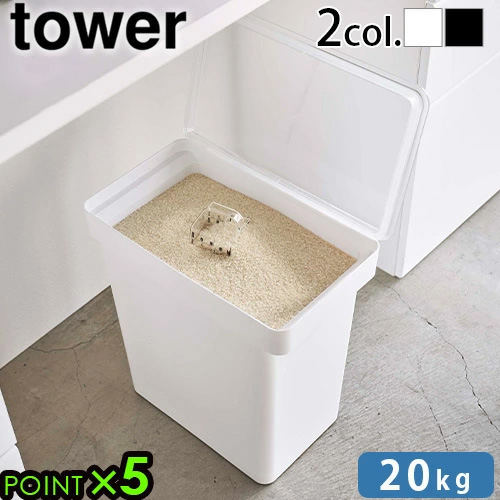 タワー 山崎実業 tower 密閉米びつ 20kg 計量カップ付 5425 5426 米びつ 10kg おしゃれ シンク下 スリム キッチン 保存容器 米櫃 10キロ ライスストッカー yamazaki ライスボックス ブラック ホワイト【12時迄のご注文は当日発送★P5倍】