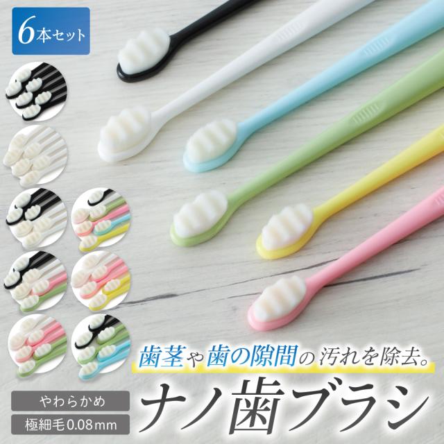 ナノ歯ブラシ やわらかめ 6本セット 【歯茎を傷つけないナノ歯ブラシ】 \薄型ヘッドに改良!新型登場しました/ ワイド歯ブラシ 超極細毛 歯ブラシ おすすめ 歯ブラシセット 大人用 家庭用 ブラック ホワイト 送料無料