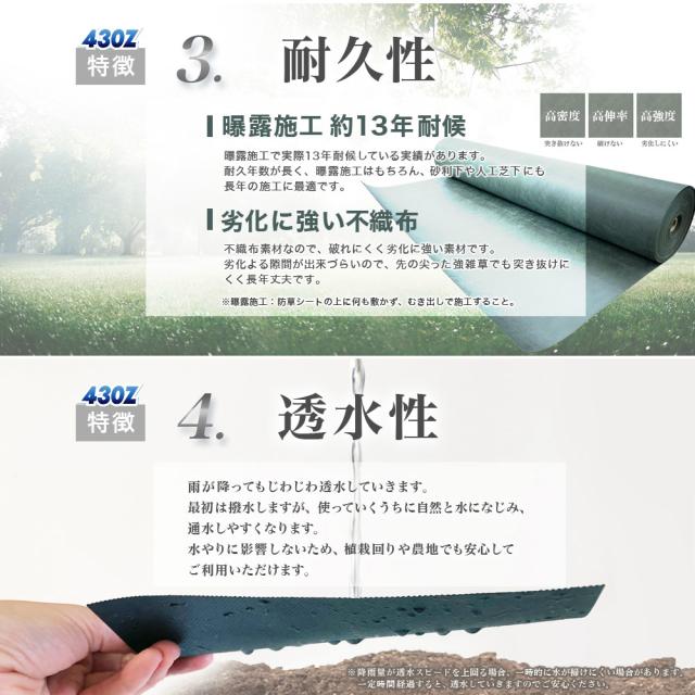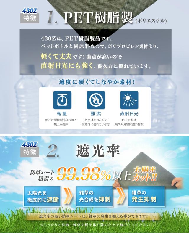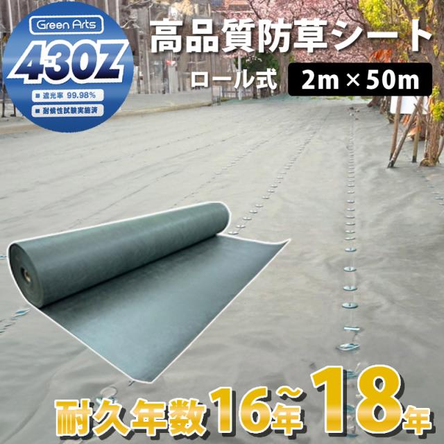 防草シート グリーンアーツ430Z 2m×50m 高品質 耐用年数 18年 高耐久 雑草防止シート 雑草 シート 防草 半永久 ざっそう 畑 通路 砂利下 高密度 除草シート ぼうそうしーと 雑草対策 高透水 PET素材 不織布 人工芝 芝生 DIY ガーデニング 草 駐車場 送料無料