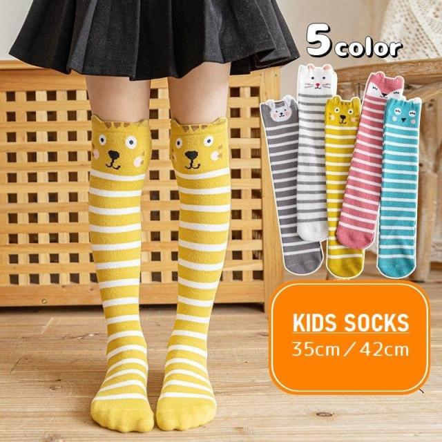 靴下 ニーハイソックス キッズ 子供用 女の子 くつ下 かかとなし ニーハイ 膝上 ロング丈 ボーダー アニマル 可愛い おしゃ