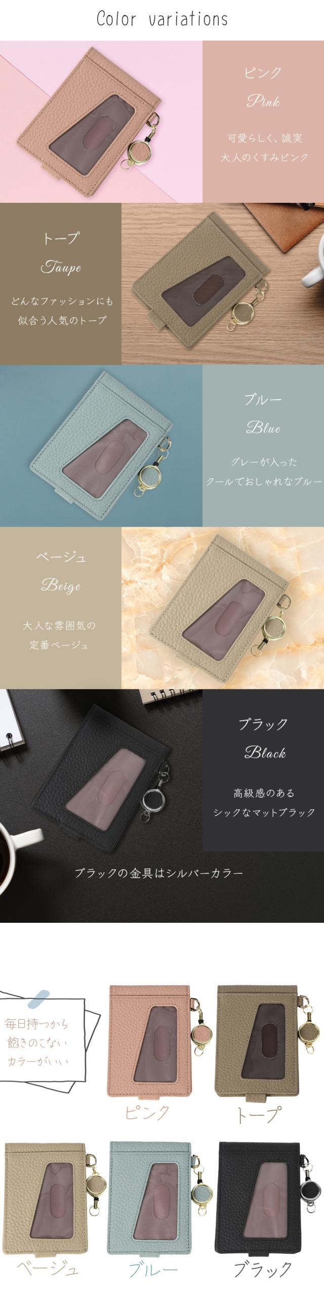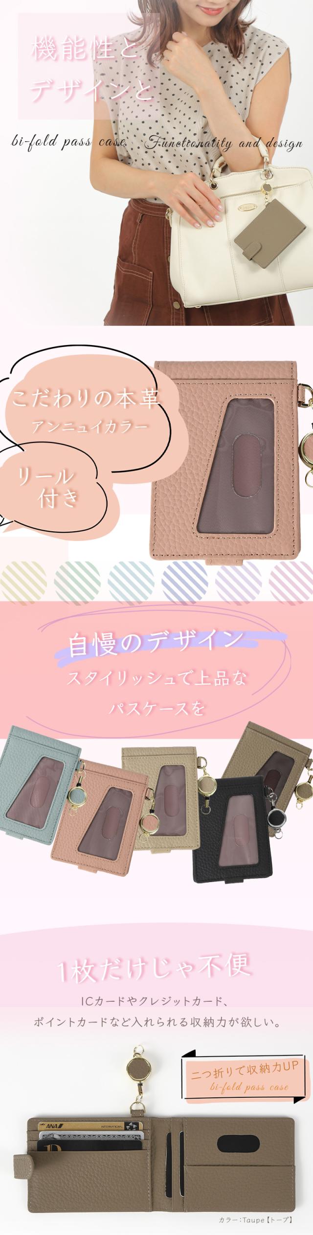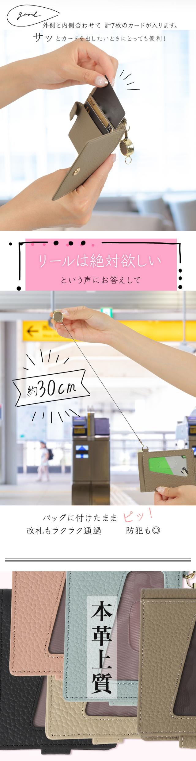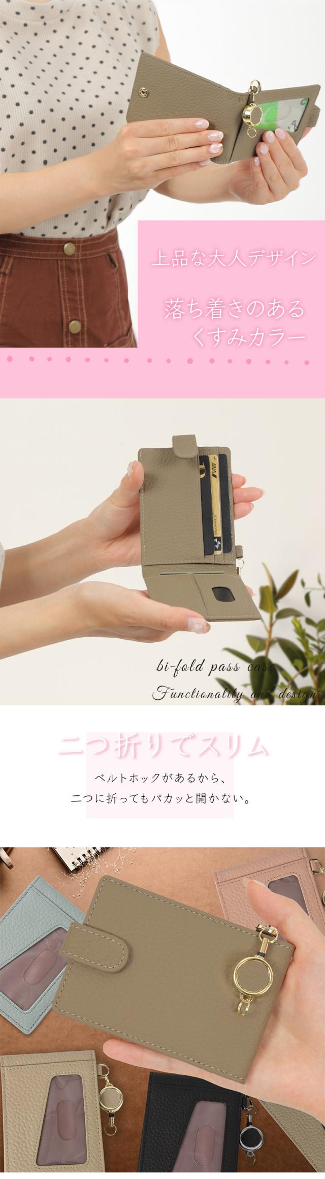 【本革 / リール付き / 収納力】 リールが付いた二つ折りのパスケース 素材は本革を使用し、丈夫で長持ちする大人なパスケースです。 ●カードポケットは7 ●小ポケットは1 収納力抜群だけど、スリム ICカードやクレジットカード、ポイントカードなどひとまとめに 毎日使う物だから機能性はもちろん、 どんなファッションにも似合う 落ち着きのあるデザインに仕上げました。 約30cmのリール付きだから、 鞄やベルトループなどに取り付けたまま icカードが使えます。 電車やバスなど 毎日の通勤・通学に大活躍 カードケースを無くす心配もありません 上質な本革を使用し高級感を演出 シンプルなデザインとマッチする シボのある表情豊かな本革 外側のクリア窓は、カードの氏名や番号が丸見えにならない形になっています。 ベルトホックが付いているので 二つ折りでもパカパカ開くことがありません。 カラーは大人くすみカラー 落ち着きと誠実な印象を持たせる 人気のカラーです。 金具は、ブラックのみシルバーカラーを採用しております | |