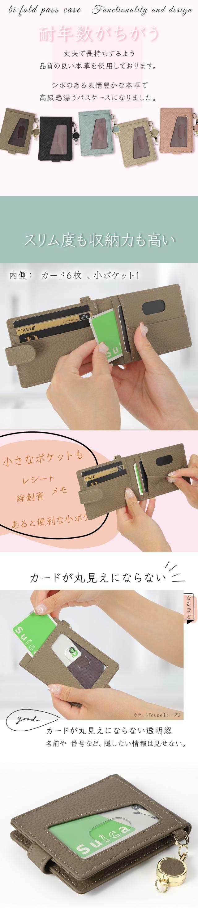 本革 リール付き パスケース 二つ折り カード7枚 革 レザー icカード 定期入れ リール付パスケース IDカードホルダー レディース メンズ 高級感 通勤 通学 suica シンプル 無地 プレゼント ギフト 男女兼用 収納力