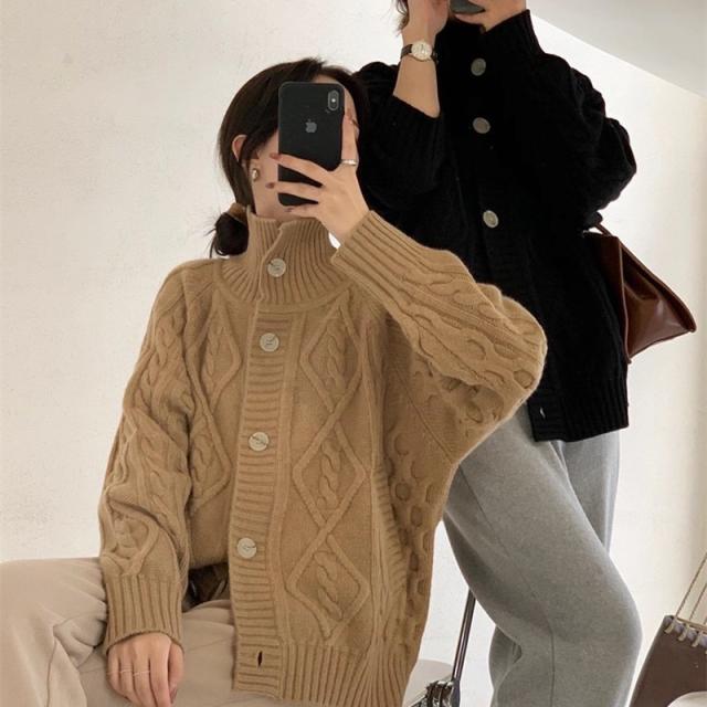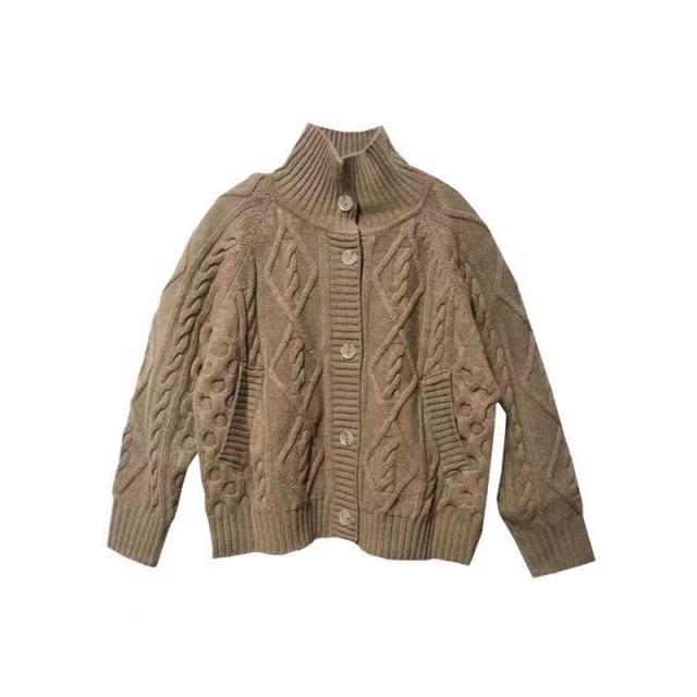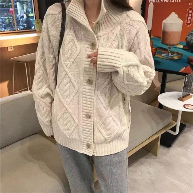 カーディガン レディース ニットセーター 前開け 長袖 無地 秋冬春 羽織り ベーシック カジュアル ケーブル編み ゆったり 細見