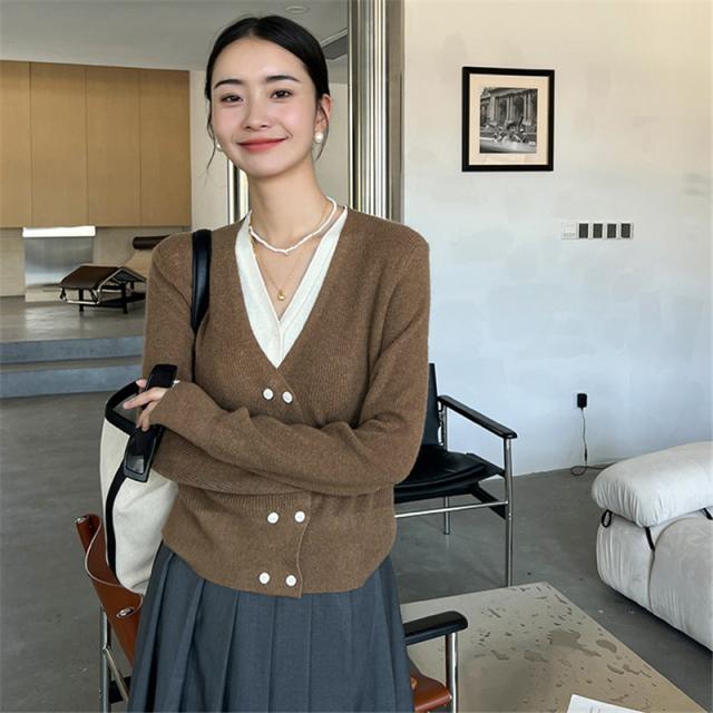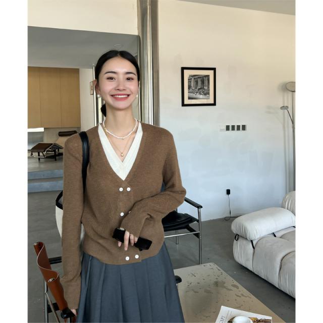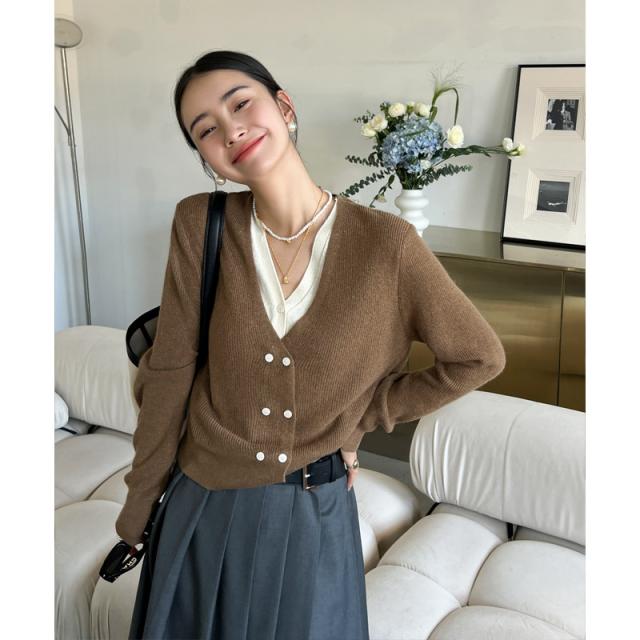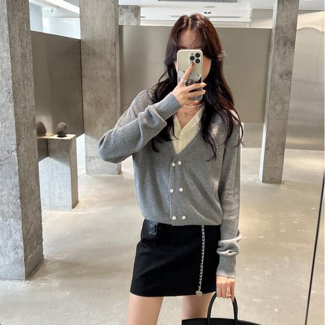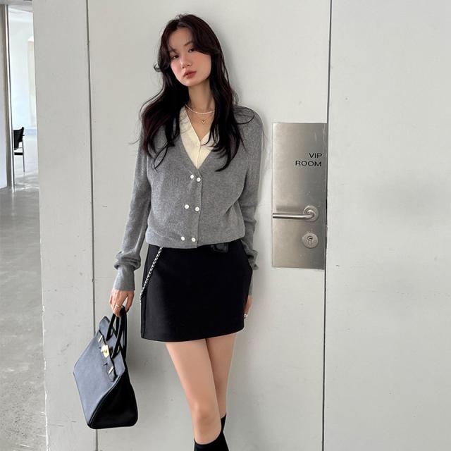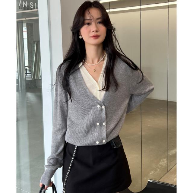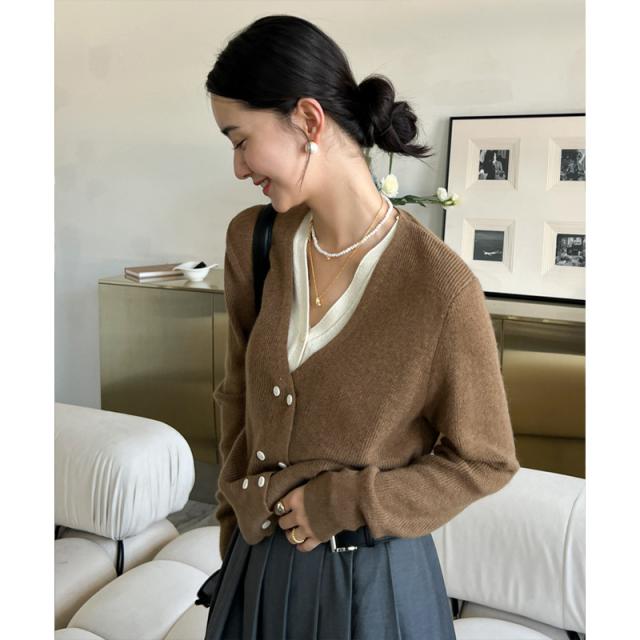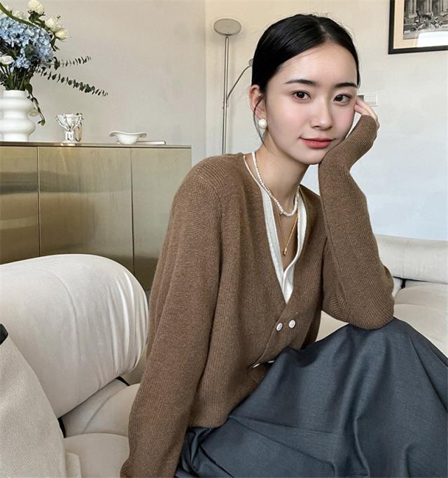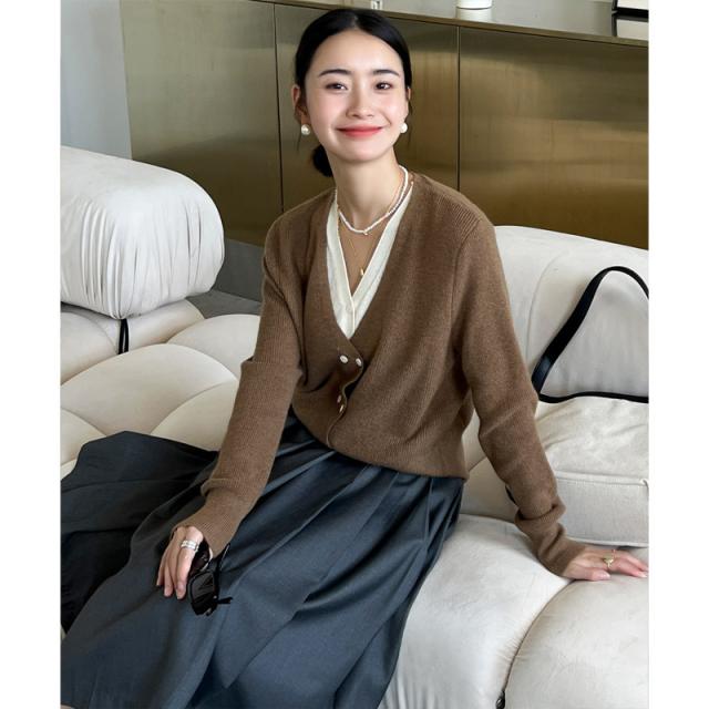お洒落女子に格上げしてくれるVネックカーディガン、華奢な印象を与えてくれる一着