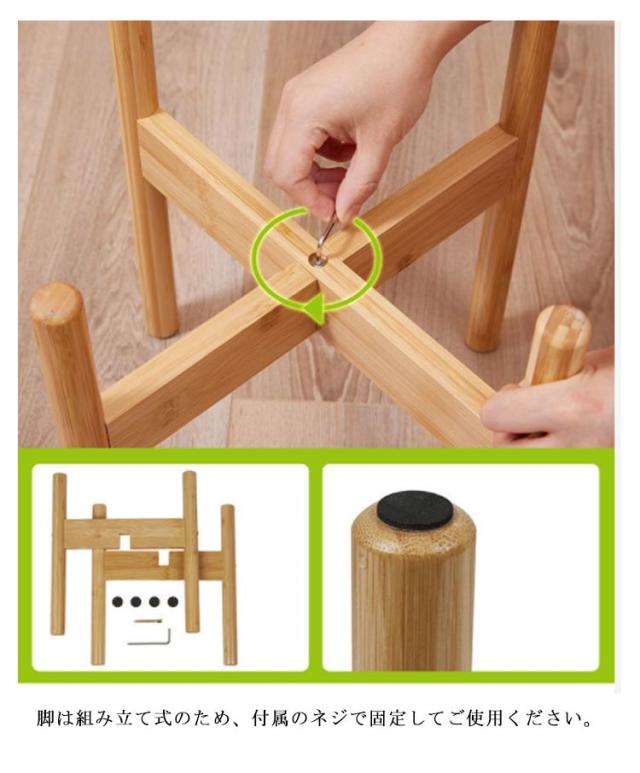 | 丸脚仕様のウッドスタンドです。 ナチュラルな風合いはどんな植木鉢にも相性がよいです。 脚は組み立て式のため、付属のネジで固定してご使用ください。 | |