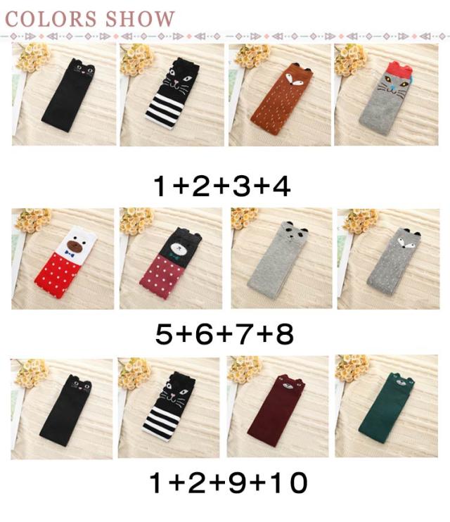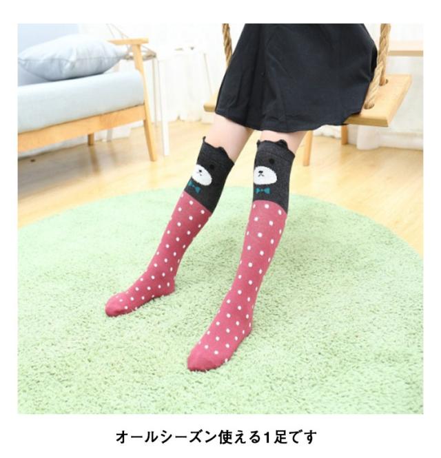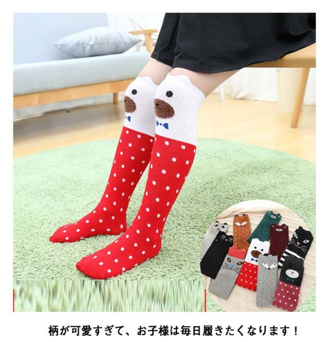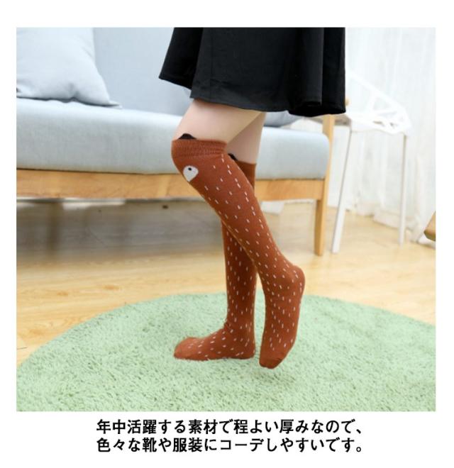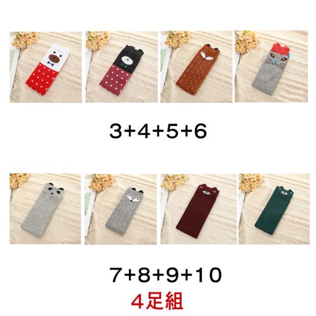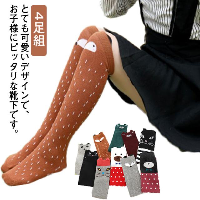靴下 キッズ 子供 女の子 ハイソックス 4足組 おしゃれ くつ下 ニーハイソックス 可愛い 子ども こども ジュニア 35cm 42cm 50cm 綿 暖かい 春 秋 冬 厚手 長い かわいい アニマル柄 小学生 幼稚園 膝丈 送料無料