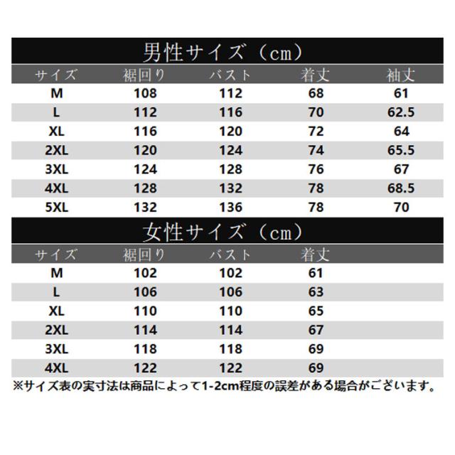 | サイズ | M L XL 2XL 3XL 4XL 5XL(男) |