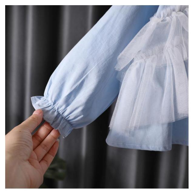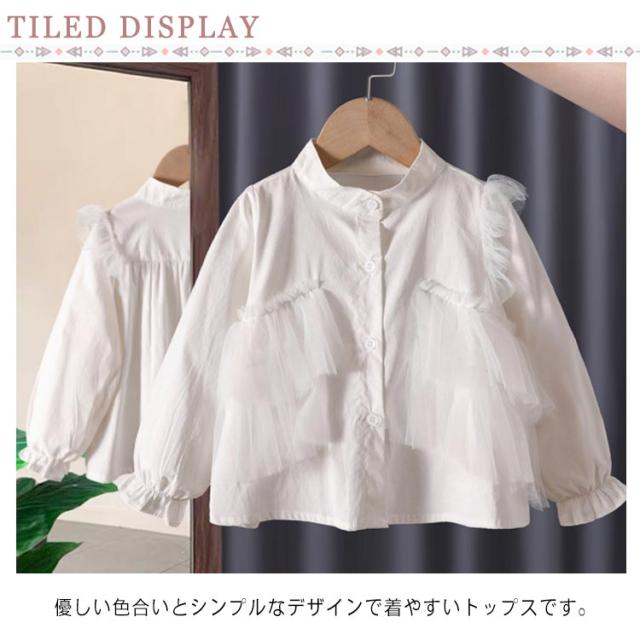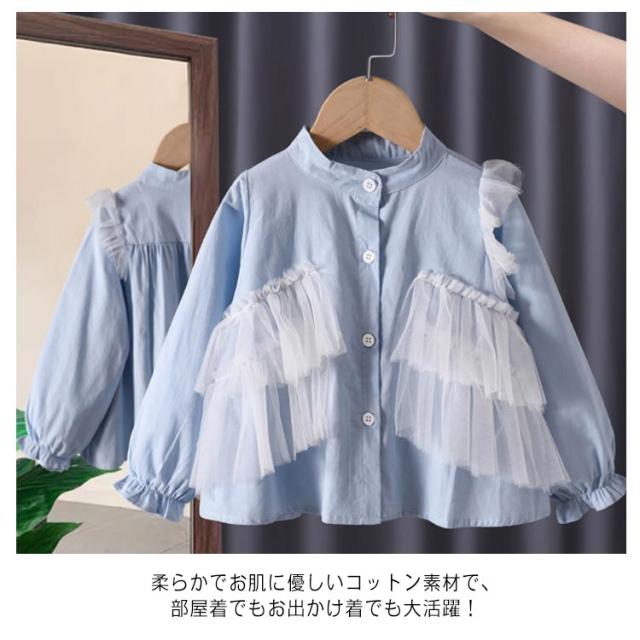 送料無料 ブラウス 長袖 子供服 キッズ ベビー トップス フリル Aライン フレア かわいい ガーリー 無地 単色 着まわし ヘビロテ 女の子 女児 80 90 100 110 120 130cm 洋服 綿 赤ちゃん 姉妹コーデ 子ども服