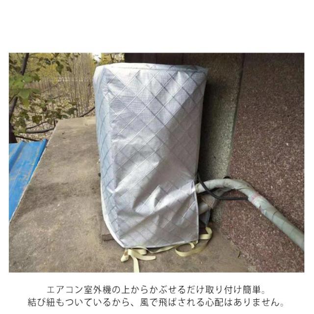 | オフシーズンの室外機を日・雨・雪・風・ホコリ・汚れから守り 表はアルミ箔素材で、紫外線からしっかり保護、劣化防止に。 裏側は柔らかい起毛素材で、強風など時カバーとの摩擦で室外機に傷つける心配もありません。 完全防水加工なので、雨や雪をシャットアウト。雪国でも安心してお使い頂け、翌シーズンの使い始めまでキレイな状態を保てます。 側面に配管ホース用のスリットが入っています。 エアコン室外機の上からかぶせるだけ取り付け簡単。結び紐もついているから、風で飛ばされる心配はありません。 | |