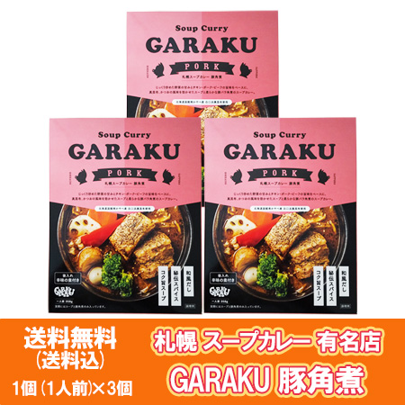 札幌スープカレー ガラク 送料無料 ガラク ポークスープカレー GARAKU 豚角煮 スープカレー レトルト カレー 3個 惣菜 カレー レトルトカレー レトルトスープカレー