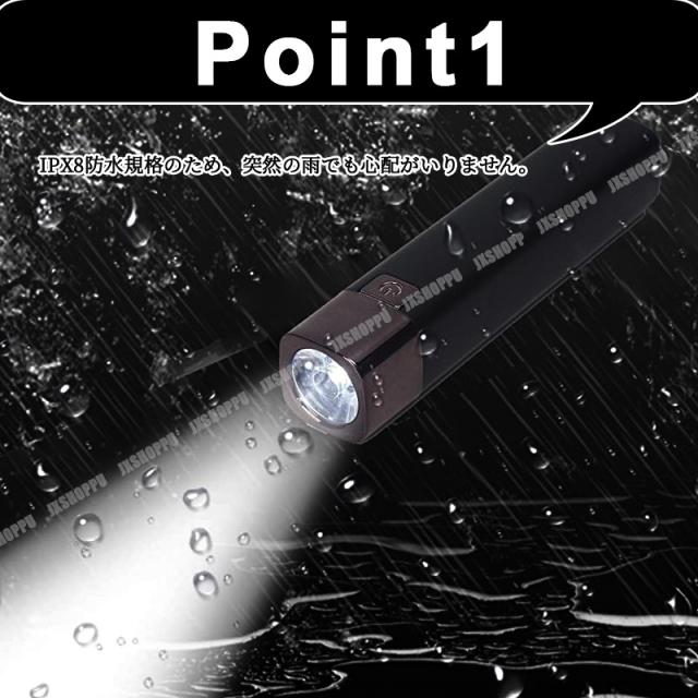 高輝度 IPX8 防水 LED ハンディライト [ホワイト] 4モード 点灯 点滅 USB充電式 点灯 小型 多機能 懐中電灯 フラッシュライト 送料無料