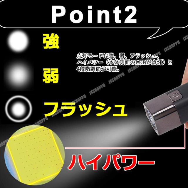 点灯モードは強、弱、フラッシュ、ハイパワー