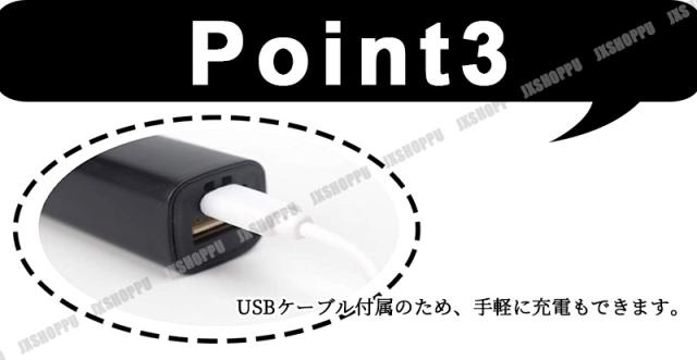 USBケーブル付属のため、手軽に充電もできます。