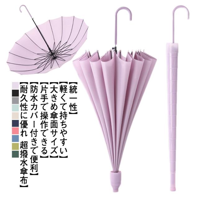 16本骨 長傘 送料無料 ワンタッチ傘 傘 紳士傘 レディース 3層防水 スライドカバー付き ジャンプ傘 無地 グラスファイバー傘骨 耐風 撥水 軽量 梅雨対策 豪雨 台風 ビジネス 通勤 通学 メンズ 防水カバー 日傘 晴雨兼用傘 先端 キャップ