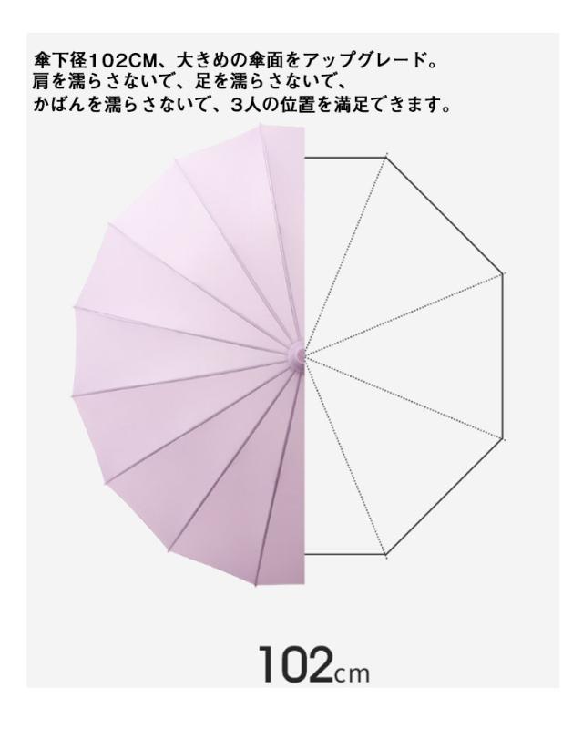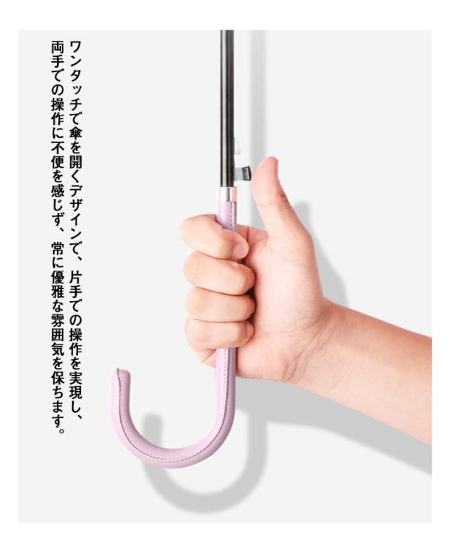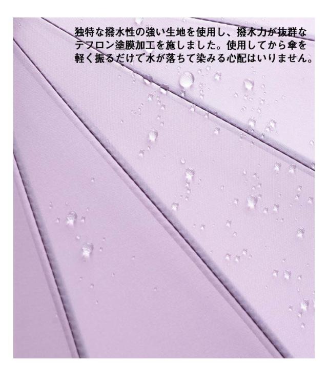 | 【耐久性に優れ 超撥水傘布】 独特な撥水性の強い生地を使用し、撥水力が抜群なテフロン塗膜加工を施しました。 使用してから傘を軽く振るだけで水が落ちて染みる心配はいりません。 【軽くて持ちやすい】 高強度グラスファイバー素材を採用し、丈夫さが強くて軽量で女性にも気軽に使えます。 手元のハンドルは持ちやすいJ字型で、軽くて長持ちするEVCスポンジで、 雨傘を差す時の肩の負担を軽減するだけではなく、持ちやすさにもこだわっている雨傘です。 【防水カバー付きで便利】 傘を使用した后は、防水カバーを閉めて、濡れた傘の面を包んで、傘の外をさらさらさせて、持ち運びに便利です。 【統一性】 柄も布も防水カバーも同じ配色で、色を統一して細部にもこだわりました。 【片手で操作できる】 ワンタッチで傘を開くデザインで、片手での操作を実現し、両手での操作に不便を感じず、常に優雅な雰囲気を保ちます。 【大きめ傘面サイズ】 傘下径102CM、大きめの傘面をアップグレード。 肩を濡らさないで、足を濡らさないで、かばんを濡らさないで、3人の位置を満足できます。 【プレゼントにもオススメ】 一本あるとお洒落を選ばない便利で可愛い長傘ですので、誕生日、記念日、母の日、 敬老の日、お祝い、バレンタイン、ホワイトデーなどのプレゼントに送れば、類い希なる貴方のセンスをアピールできます。 | |