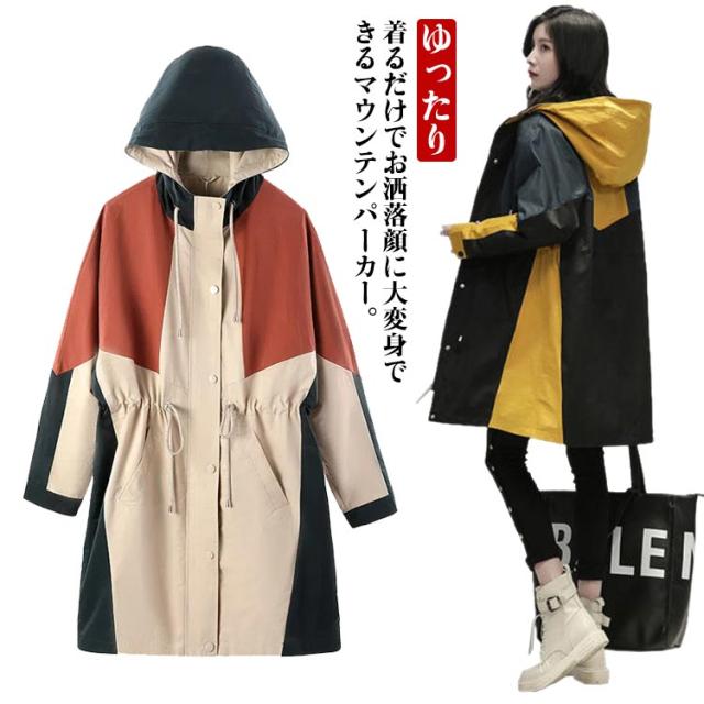 フードパーカー レディース ブルゾン マウンテンパーカー ジャケット アウター スタンドカラー 大きいサイズ ゆったり 着痩せ 切り替え マウンテンジャケット 羽織り カジュアル アウトドア おしゃれ 裏地付き S-3XL