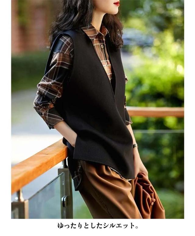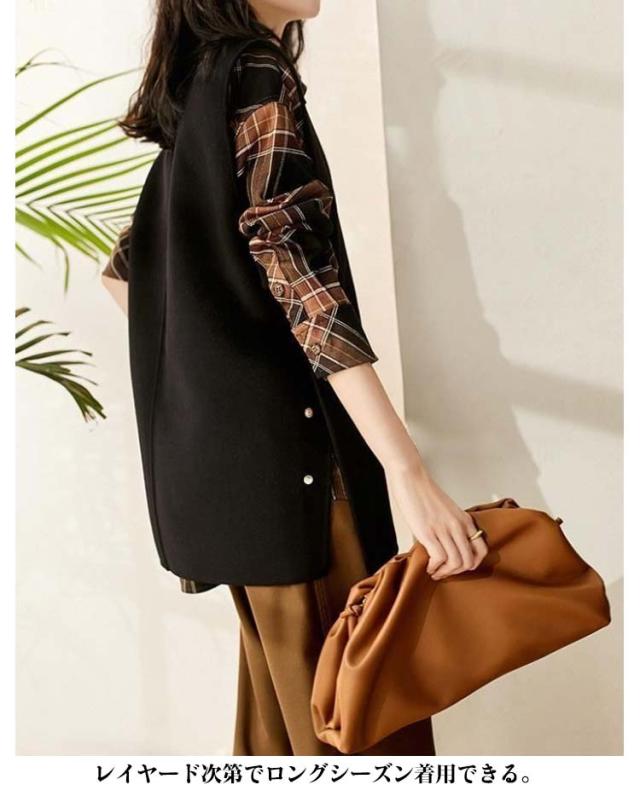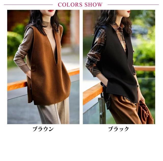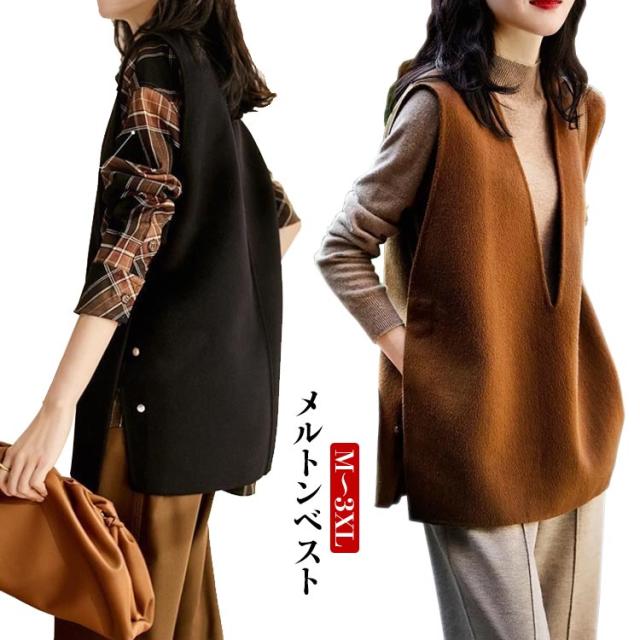送料無料 メルトンベスト タンクトップ レディース 大きいサイズ Vネック ノースリーブ ロング レディース トップス タンク レイヤード サイドスリット 無地