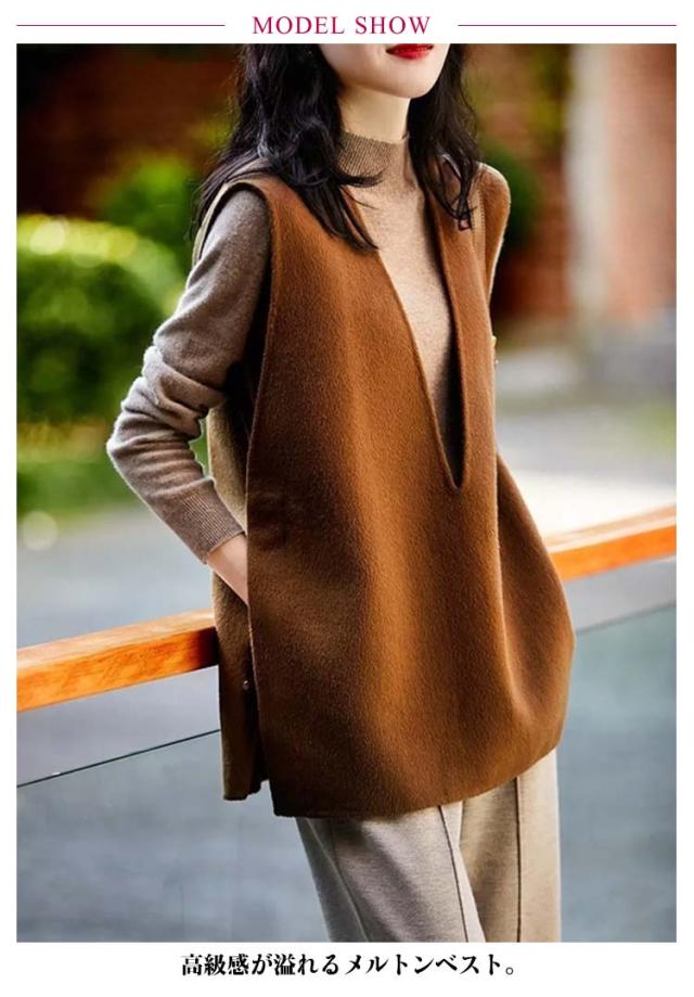 | 高級感が溢れるメルトンベスト。 チクチク感もなく、着心地の良い柔らかなタッチ。 サイドのプッシュボタンがポイント。 ゆったりとしたシルエット。 レイヤード次第でロングシーズン着用できる。 | |