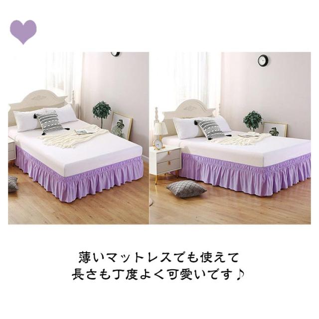 | フリルの美しさに、このベッドスカートだけで、ベッドが可愛く変身します。 四隅にゴムバンドがつけており、ズレにくい上で、マットレスを持ち上げずに簡単に設置できます。 見苦しいボックススプリングやベッドフレーム、ストレージを隠します。 シンプルな無地パステルカラの12色展開。いろいろなタイプのお部屋のベットにもコーディネート出来ます。 なめらかな肌触りで、しなやかな風合いを出しております。取り付けも洗濯も楽チン。 薄いマットレスでも使えて長さも丁度よく可愛いです♪ | |