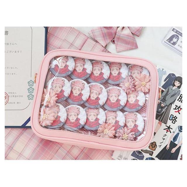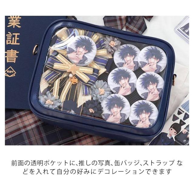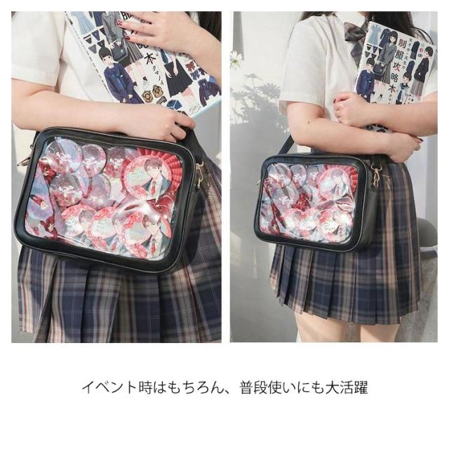 | 推しグッズをおしゃれに持ち歩こう! イベント時はもちろん、普段使いにも大活躍。 前面の透明ポケットに、推しの写真、缶バッジ、ストラップ などを入れて自分の好みにデコレーションできます。 スマホや財布収納できるオープンポケット付き。たっぷりのマチで収納力はばっちり。 入口はファスナー付きで安心。 | |