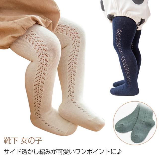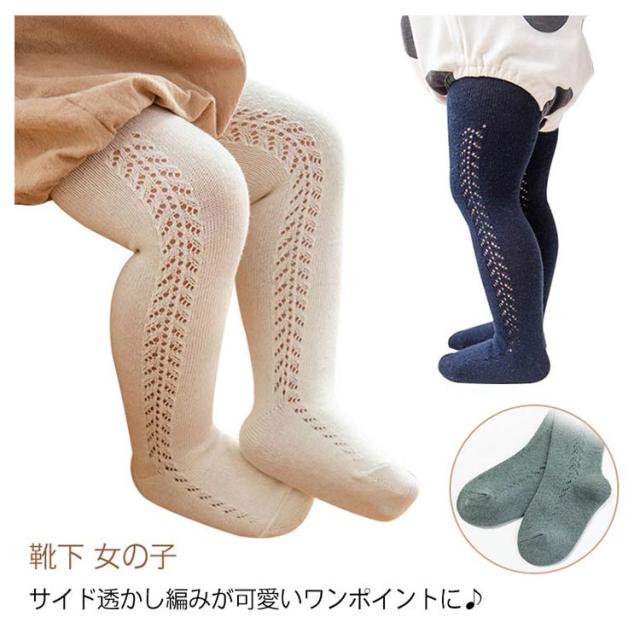 タイツ ベビー キッズ ストッキング 送料無料 0-5歳 サイド透かし編み スパッツ 防寒対策 ベビータイツ 子ども ニットタイツ 出産祝い レギンス