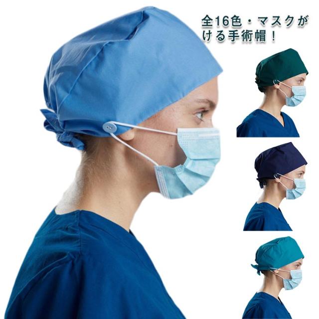 マスクがける手術帽・全16色! 衛生キャップ マスク 作業帽子 医師用 手術用 医療用 手術用キャップ 獣医師 衛生帽 動物病院 介護 キャップ メンズ レディース 送料無料 吸汗 速乾 通気性 無地 抗菌 防臭 給食 男女兼用