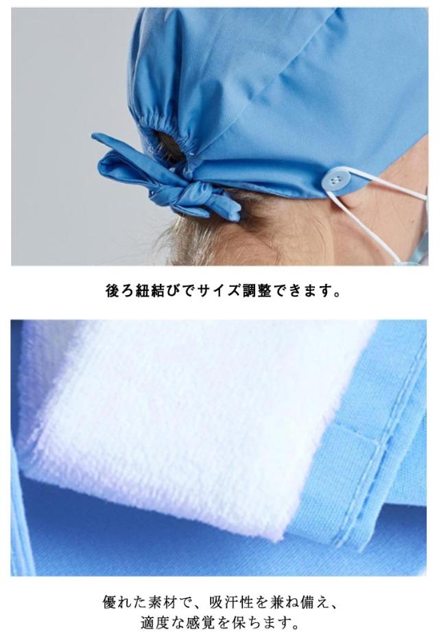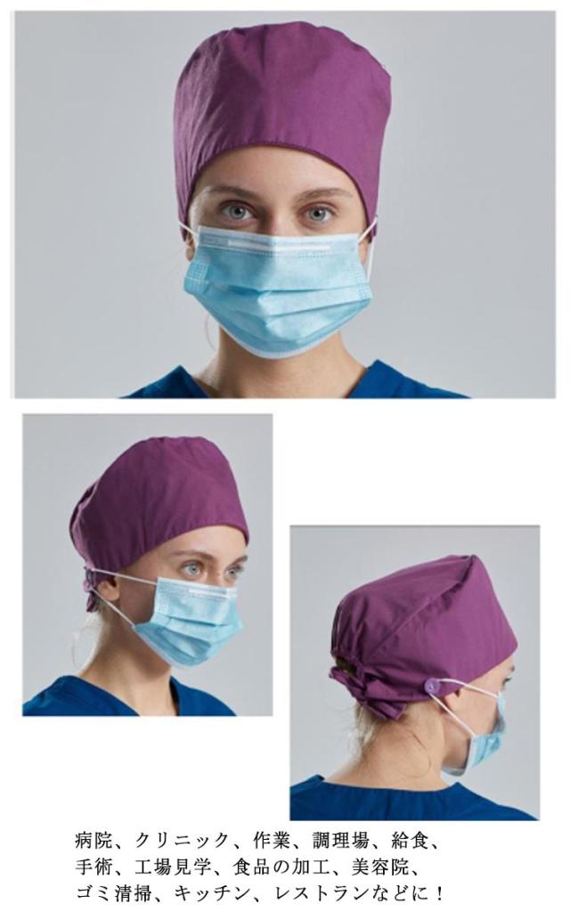 | 全16色・マスクがける手術帽! マスクボタンがけ付き、耳が痛くなりにくく快適! 両サイドにマスクボタンがけ付きで、長時間使用しても耳が痛くなりにくく快適。 汚れを防ぎ、洗濯での落ちを良くする効果のある。 ポリエステル 綿素材使用! 後ろ紐結びでサイズ調整できます。 ナース 作業 医療用商品にポピュラーな定番商品です。 優れた素材で、吸汗性を兼ね備え、適度な感覚を保ちます。 安全の手術帽/作業帽子/衛生帽。 病院、クリニック、作業、調理場、給食、手術、工場見学、食品の加工、美容院、ゴミ清掃、キッチン、レストランなどに! | |
